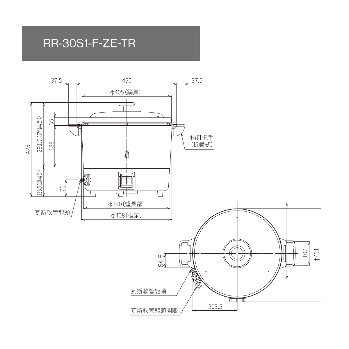 | 外觀尺寸 mm W×H | Φ 450(含把手)× 425 |