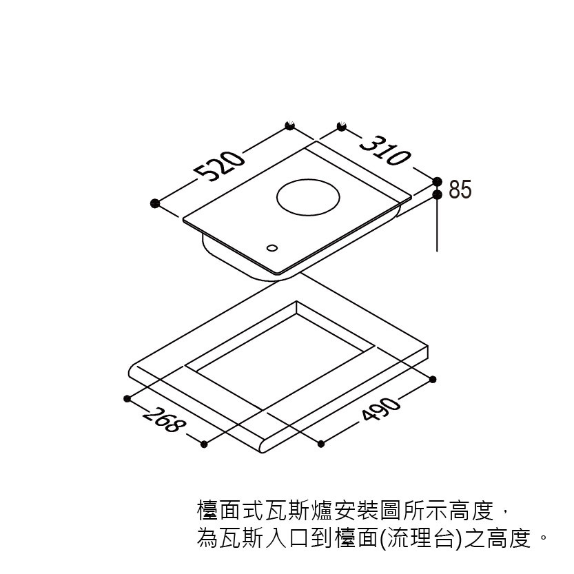 挖孔尺寸 mm W×D | 268×490(R0) |