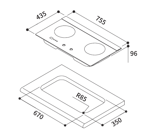 | 挖孔尺寸 mm W×D | 670×350 (R85)(適用W660~680 X D350~403 (R85)挖孔) |
