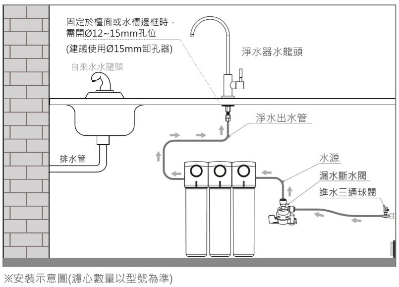 | 建議安裝順序(進水↓出水) ② | RWP-FA1 複合式PP活性碳 |