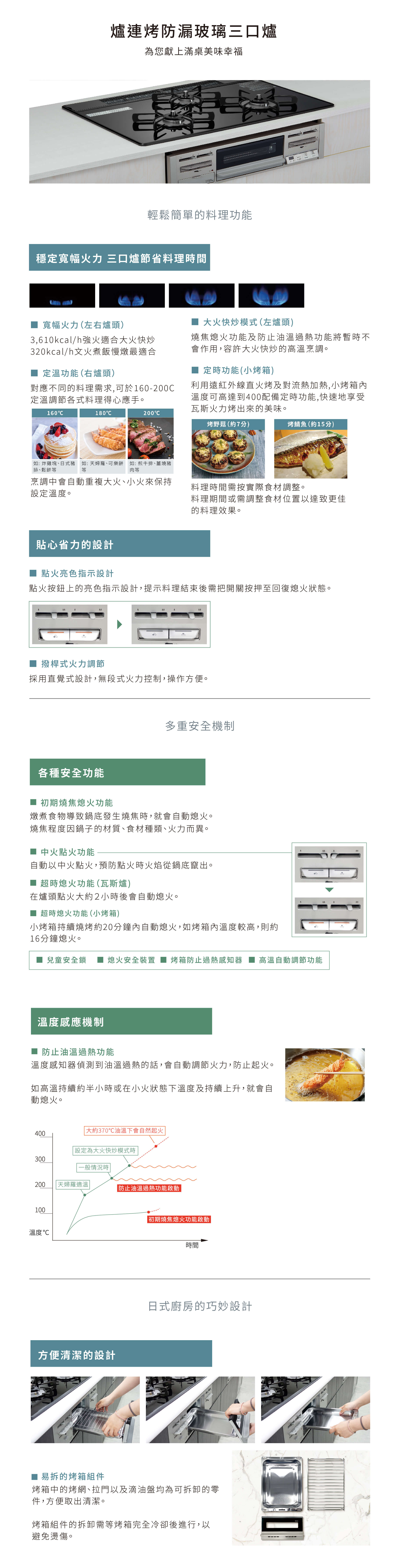 爐連烤防漏玻璃三口爐